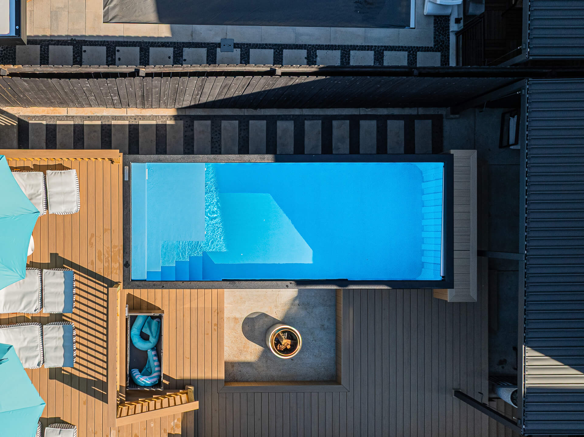 Absolutely—that’s one of the best features of a dip pool! Thanks to their compact size, dip pools can be efficiently heated for year-round use. Most of our clients keep the heater off during the summer and use the pool as a refreshing escape. Then, in the cooler months—while most traditional pools are closed—dip pool owners turn up the heat to 90–100°F and enjoy it like a giant in-ground hot tub. Want to take it up a notch? Add spa jets for the ultimate spa experience.
